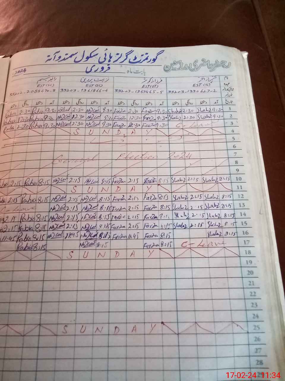| CNIC | Full Name | Designation | R/C | Absence During Last Calender Month |