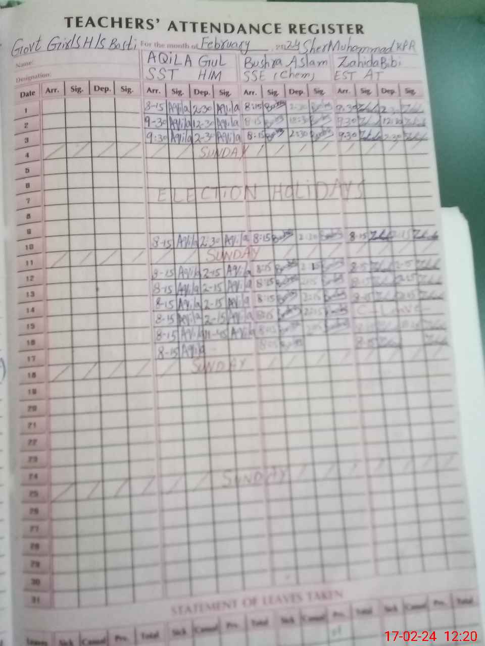 | Name: AQ**** GU**** Designation: (School Headmaster's/Headmistress's) S.S.T.(G) Phone/Cell Number: 03**** |
