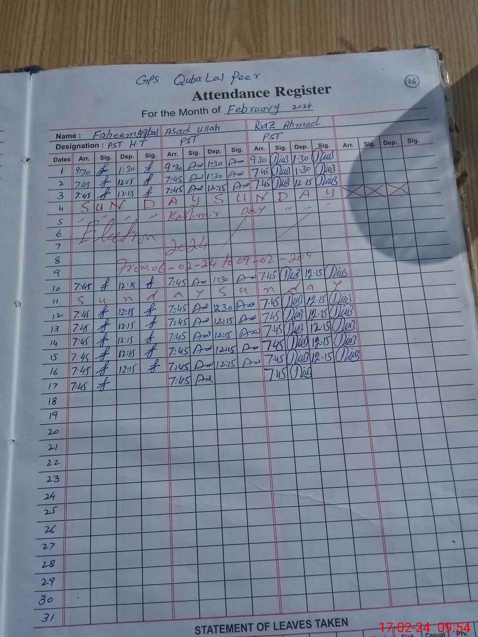 | Name: FA**** IQ**** Designation: (School Headmaster's/Headmistress's) PST Phone/Cell Number: 03**** |