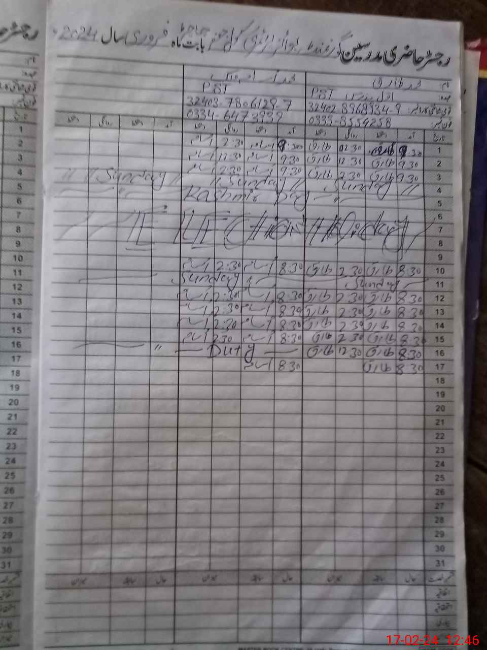 | CNIC | Full Name | Designation | R/C | Absence During Last Calender Month |