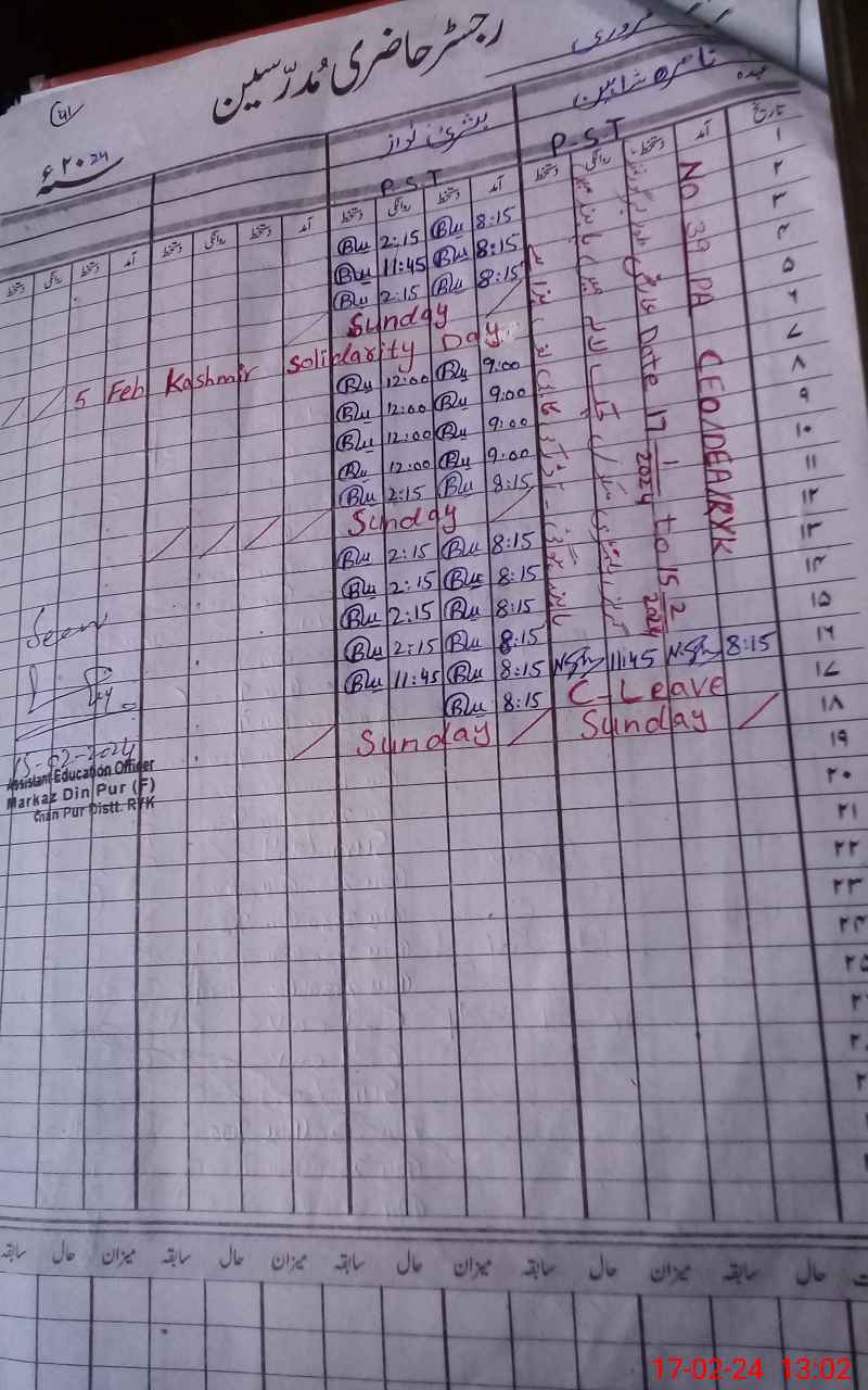 | District: RAHIMYAR KHAN | Tehsil: KHANPUR | Markaz: DIN PUR SHARIF - FEMALE | Level: Primary | |