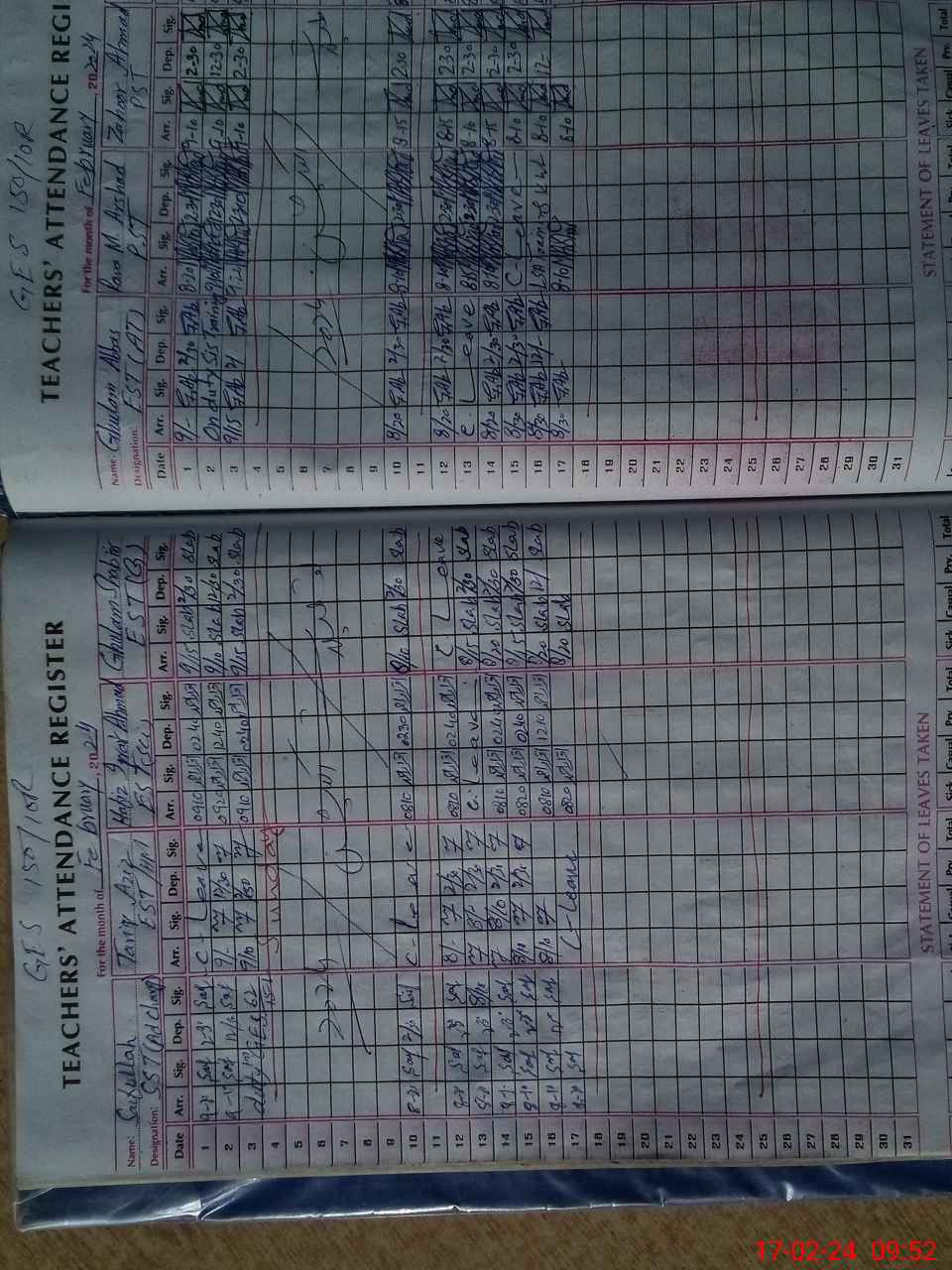 | Leave | Duty | Absent | Maternity | Medical | Ex- Pak |