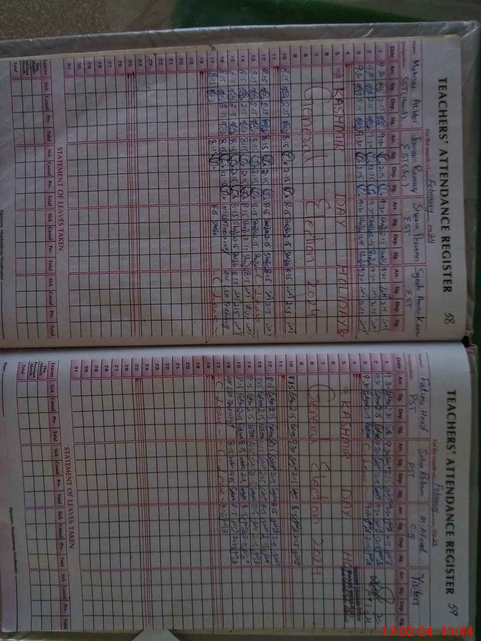 | Leave | Duty | Absent | Maternity | Medical | Ex- Pak |