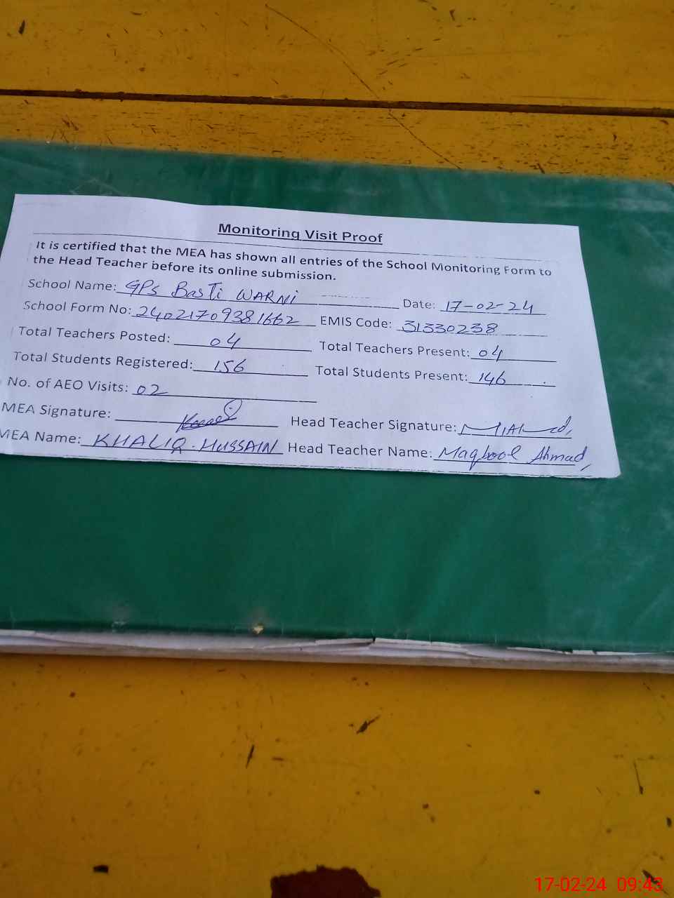 | EMIS Code: 31330238 | Name of School: GPS WARNI | |||
