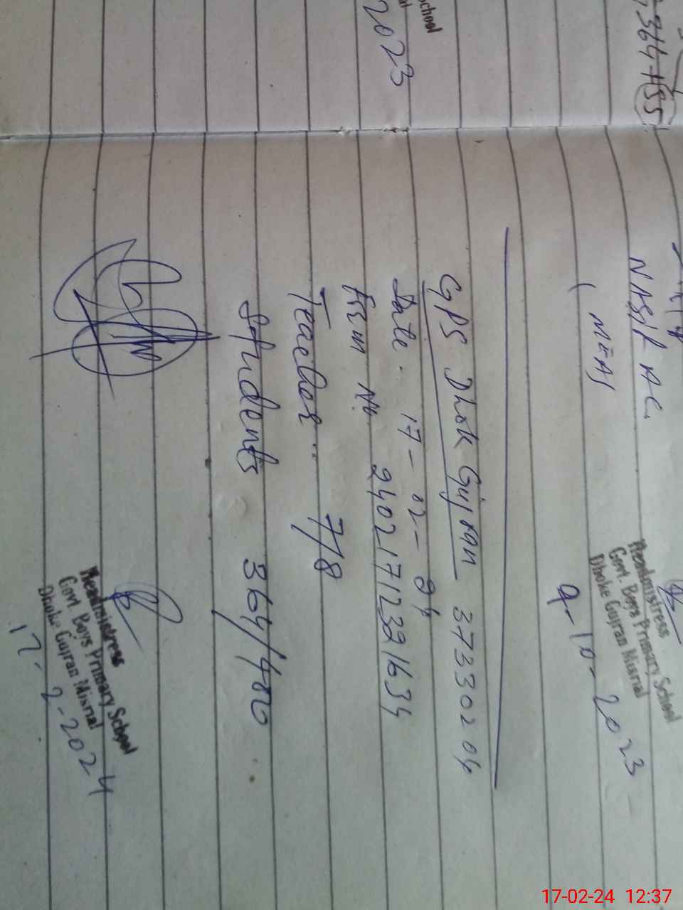 | EMIS Code: 37330204 | Name of School: GPS DHOK GUJRAN MISRIAL | |||