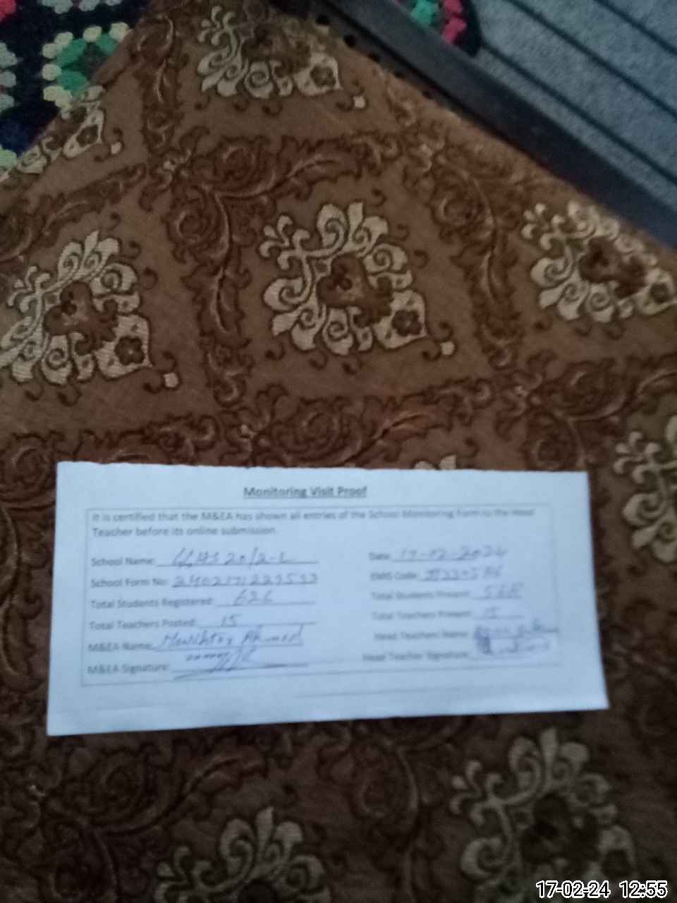 | Attendance Register | Head Teacher | MEA with School | Visit Proof |