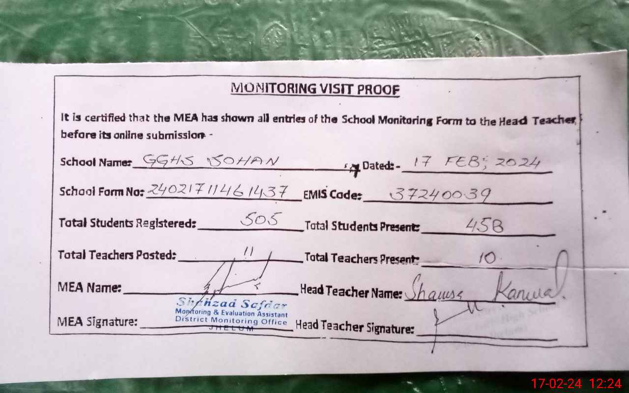 | EMIS Code: 37240039 | Name of School: GGHS SOHAN | |||