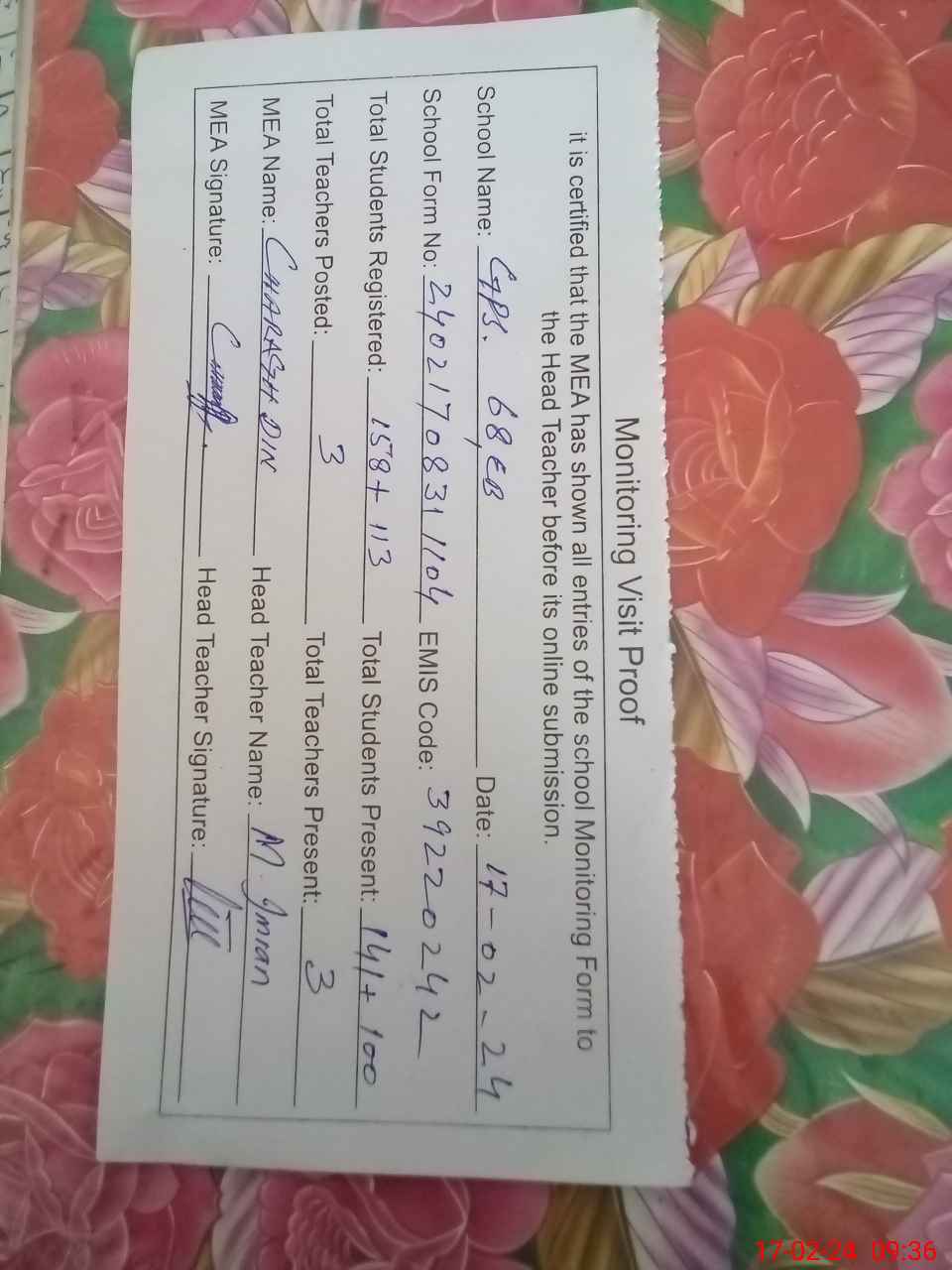 | EMIS Code: 39220242 | Name of School: GPS 68 EB | |||