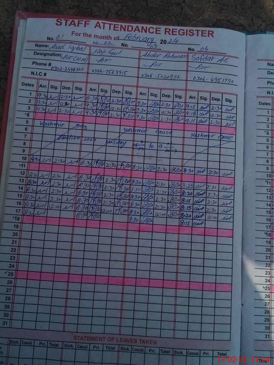 | Name: AS**** IQ**** Designation: (School Headmaster's/Headmistress's) PST Phone/Cell Number: 03**** |