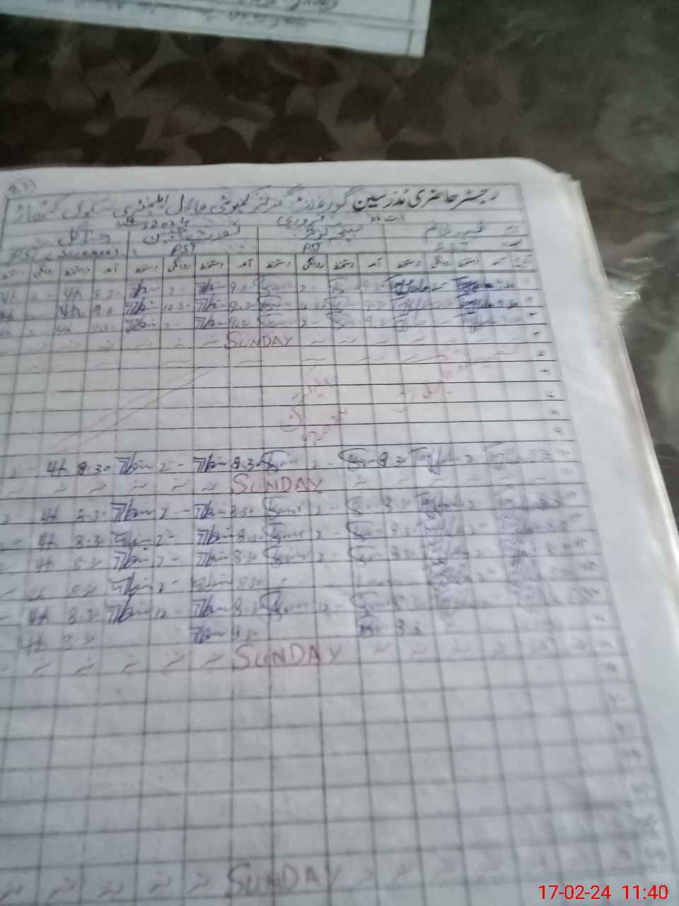 | CNIC | Full Name | Designation | R/C | Absence During Last Calender Month |