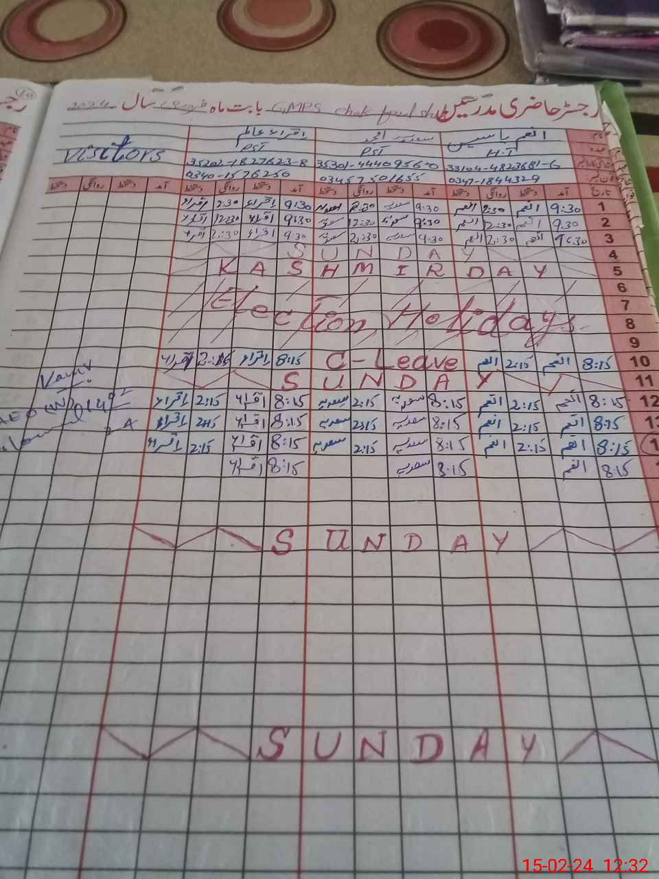 | CNIC | Full Name | Designation | R/C | Absence During Last Calender Month |