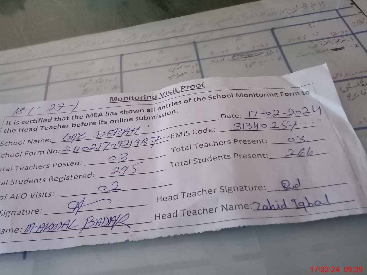 | EMIS Code: 31340257 | Name of School: GPS DERAH | |||