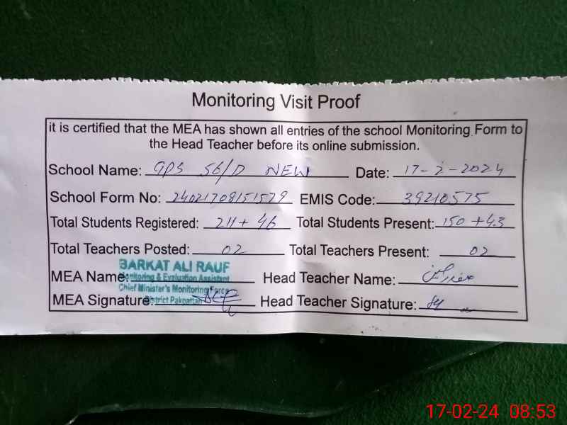 | EMIS Code: 39210575 | Name of School: GPS CHAK NO. 56/D (NEW) | |||