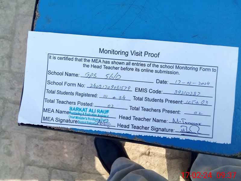 | EMIS Code: 39210287 | Name of School: GPS 56/D | |||