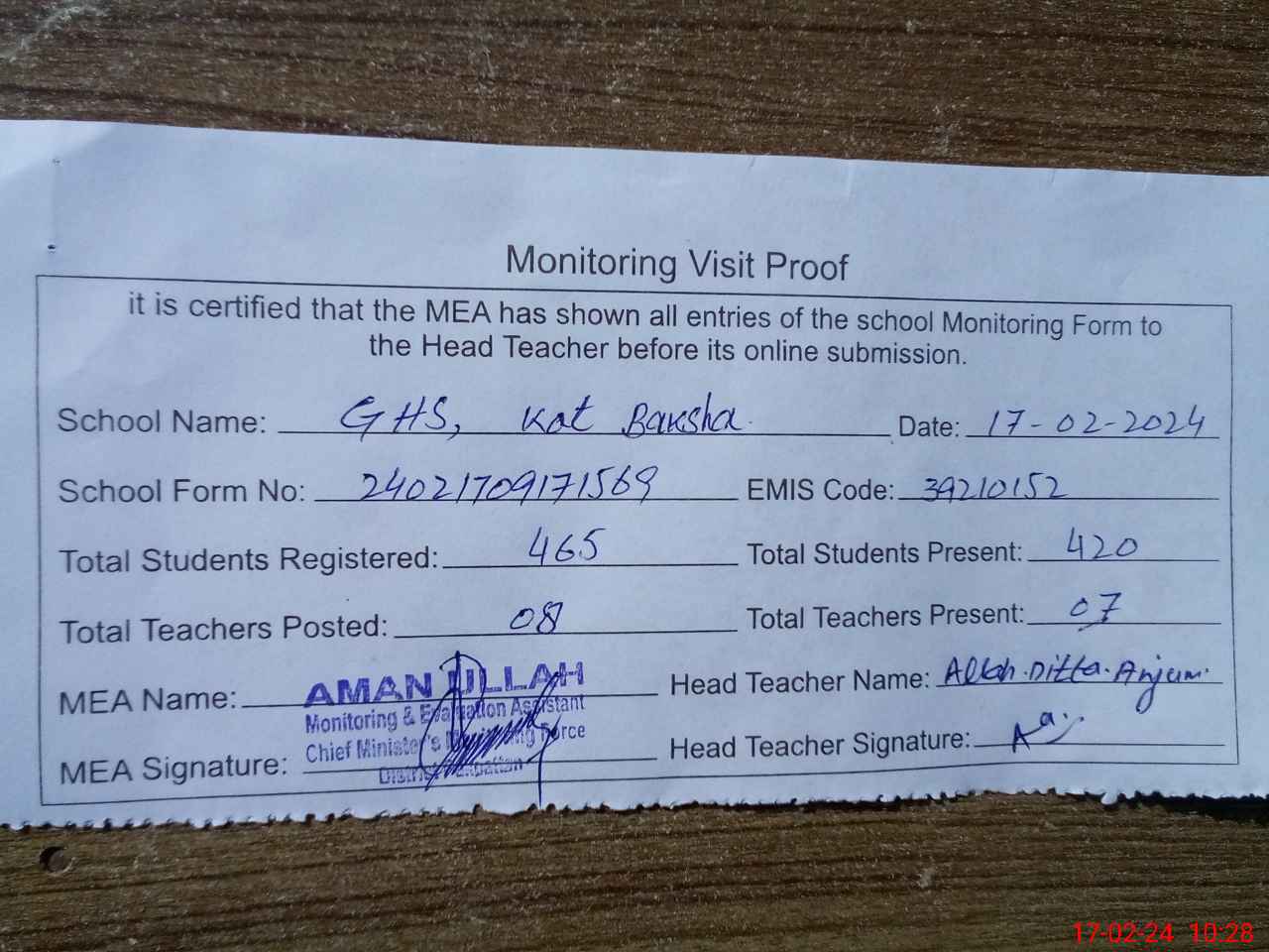 | EMIS Code: 39210152 | Name of School: GHS KOT BAKHSHA | |||