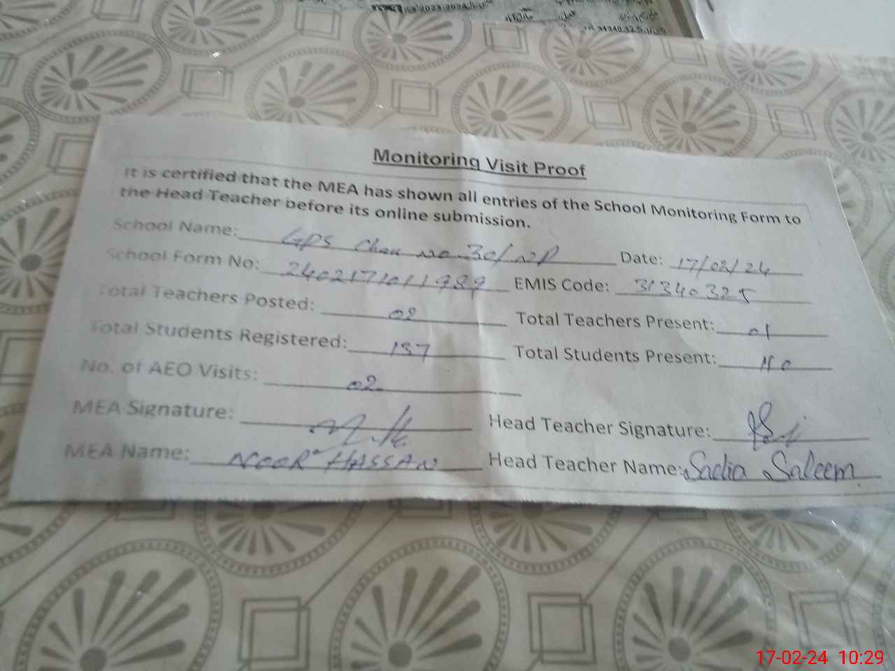 | EMIS Code: 31340325 | Name of School: GPS CHAK NO 30/NP | |||