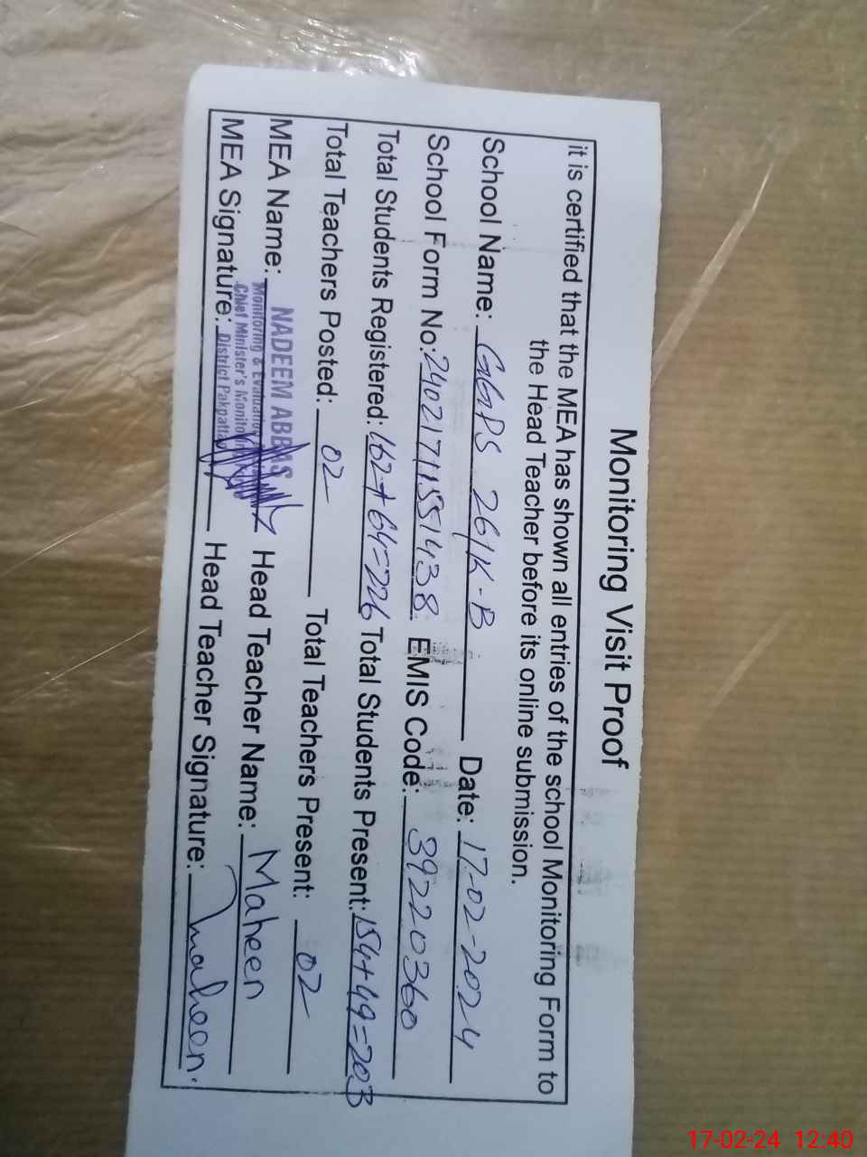| EMIS Code: 39220360 | Name of School: GMPS CHAK NO 26 KB | |||