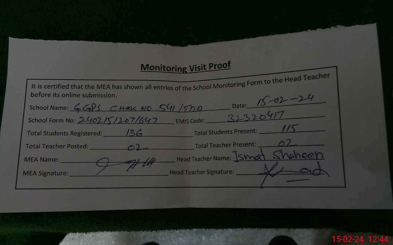 | EMIS Code: 32320417 | Name of School: GGPS CHAK NO. 541 TDA | |||