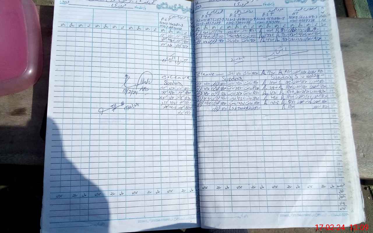| CNIC | Full Name | Designation | R/C | Absence During Last Calender Month |