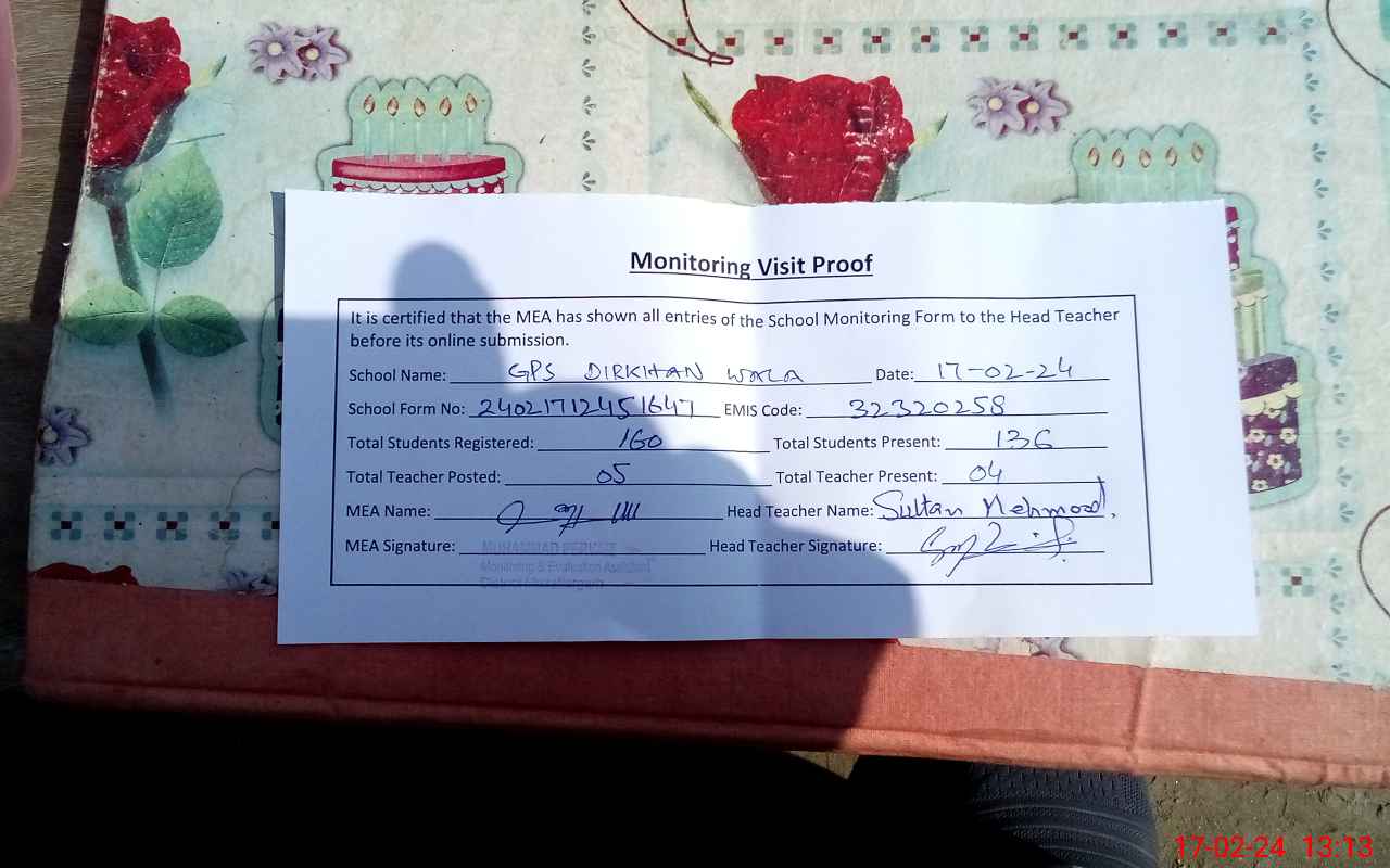 | EMIS Code: 32320258 | Name of School: GPS DIRKHAN WALA | |||