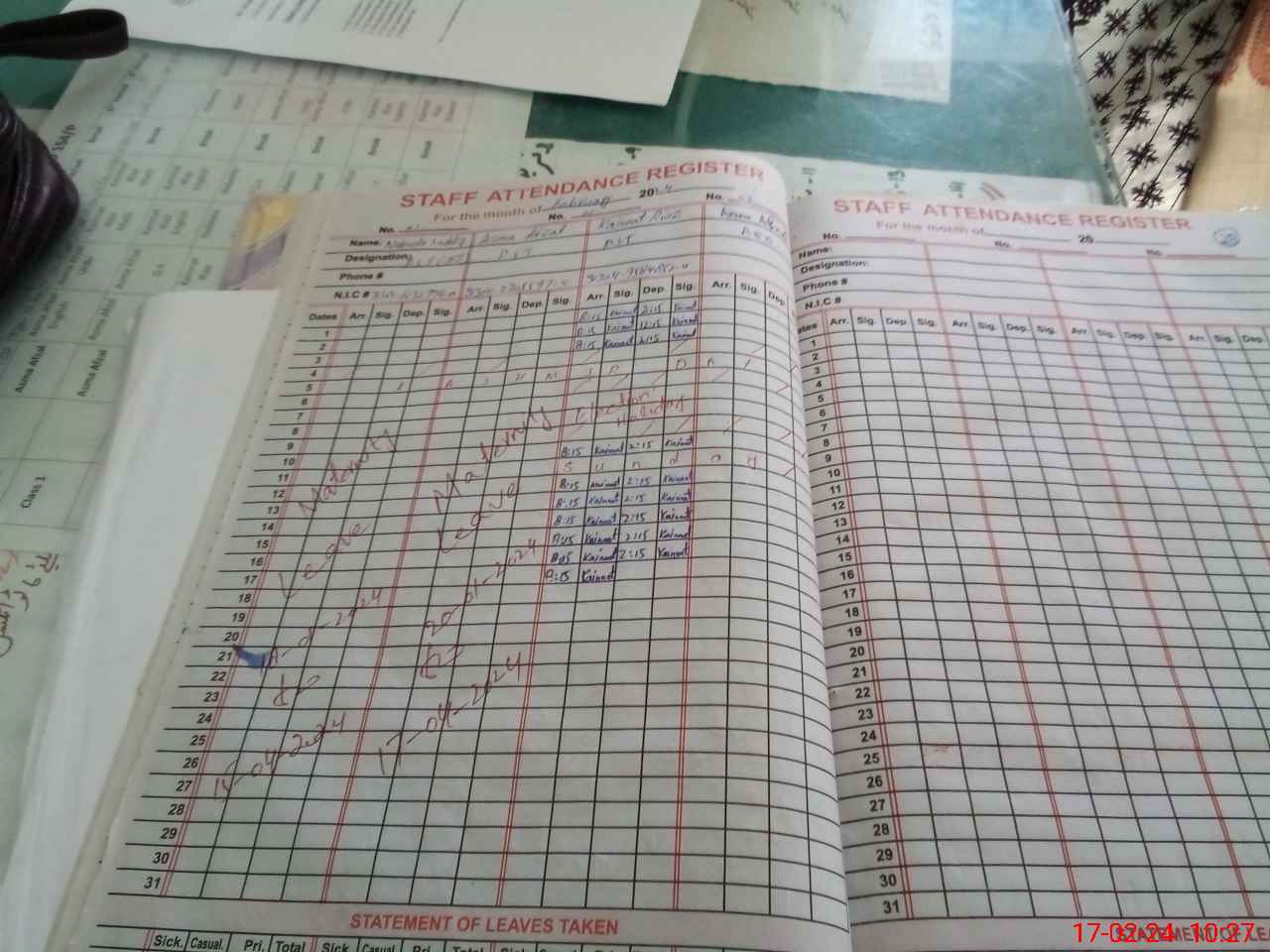 | CNIC | Full Name | Designation | R/C | Absence During Last Calender Month |