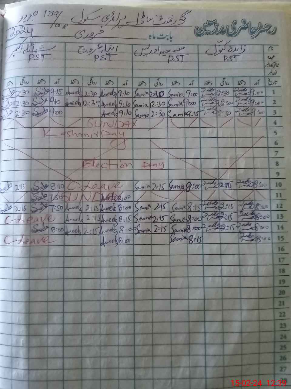 | Name: Za**** Ka**** Designation: (School Headmaster's/Headmistress's) PST Phone/Cell Number: 03**** |