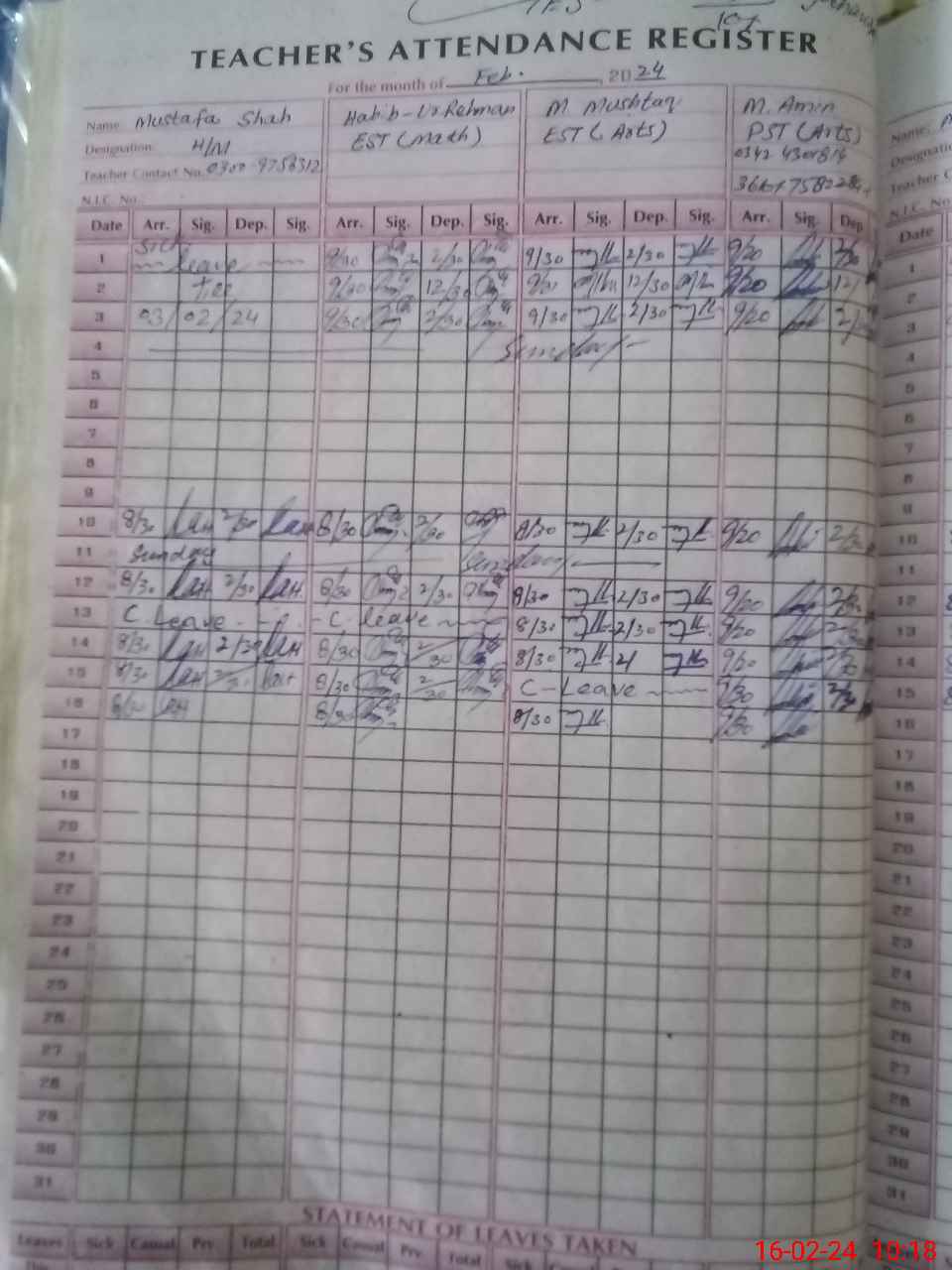 | Name: MU**** AH**** KH**** Designation: (School Headmaster's/Headmistress's) S.S.T.(G) Phone/Cell Number: 03**** |