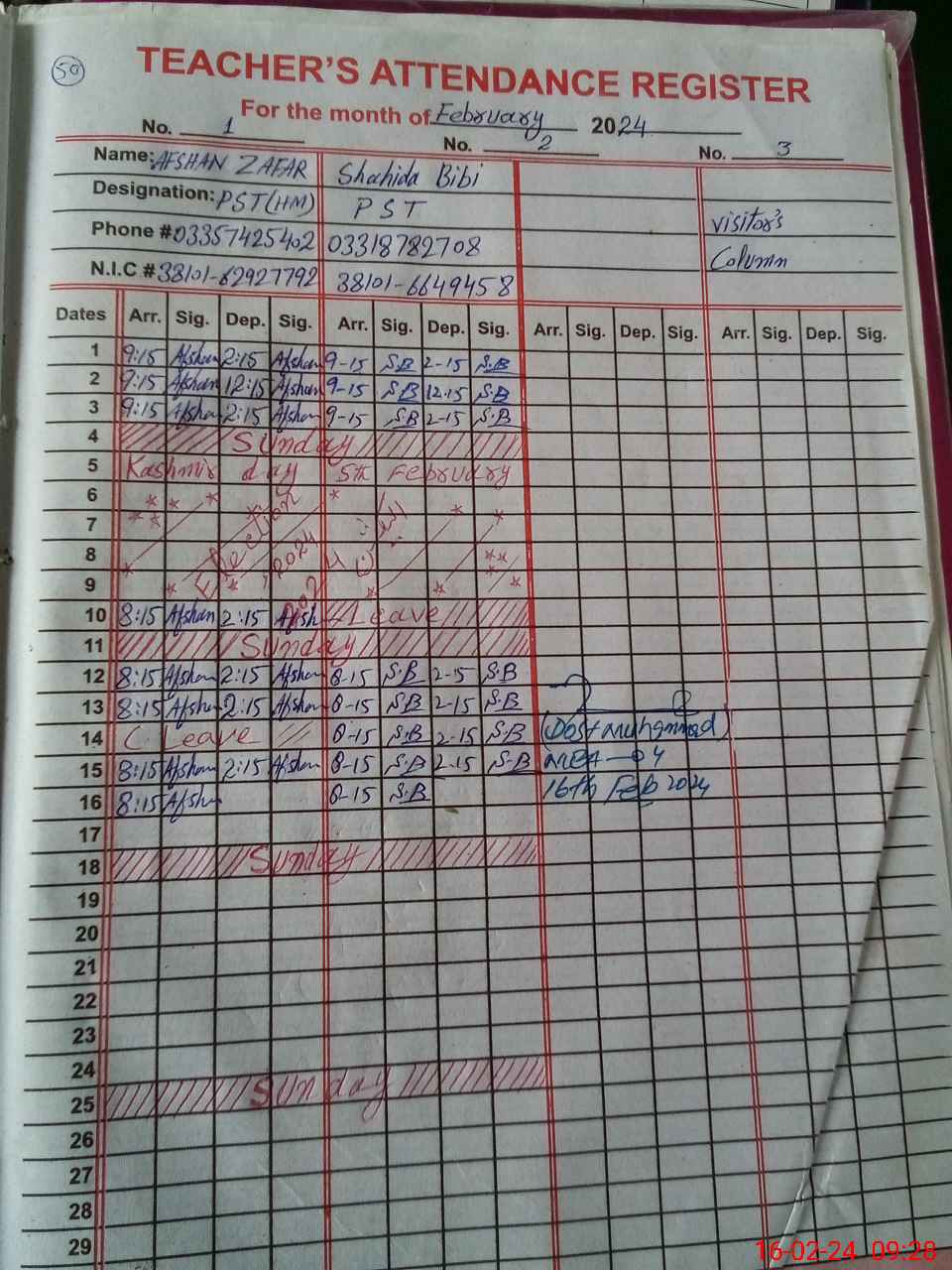 | Name: Af**** Za**** Designation: (School Headmaster's/Headmistress's) PST Phone/Cell Number: 03**** |