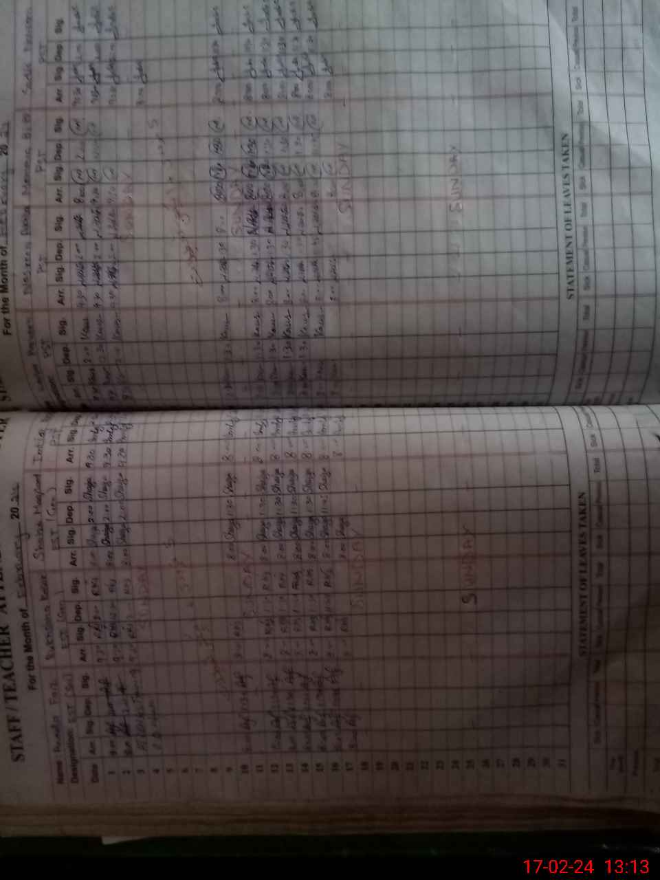 | No. of Students Present - Female | 0 | 0 | 40 | 33 | 34 | 35 | 43 | 38 | 51 | 35 | 38 | 50 | 38 | 435 | ||