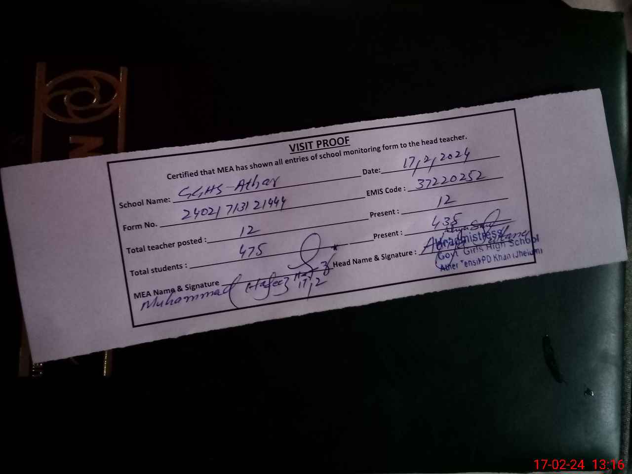 | Name: AT**** SU**** Designation: (School Headmaster's/Headmistress's) HM Phone/Cell Number: 03**** |