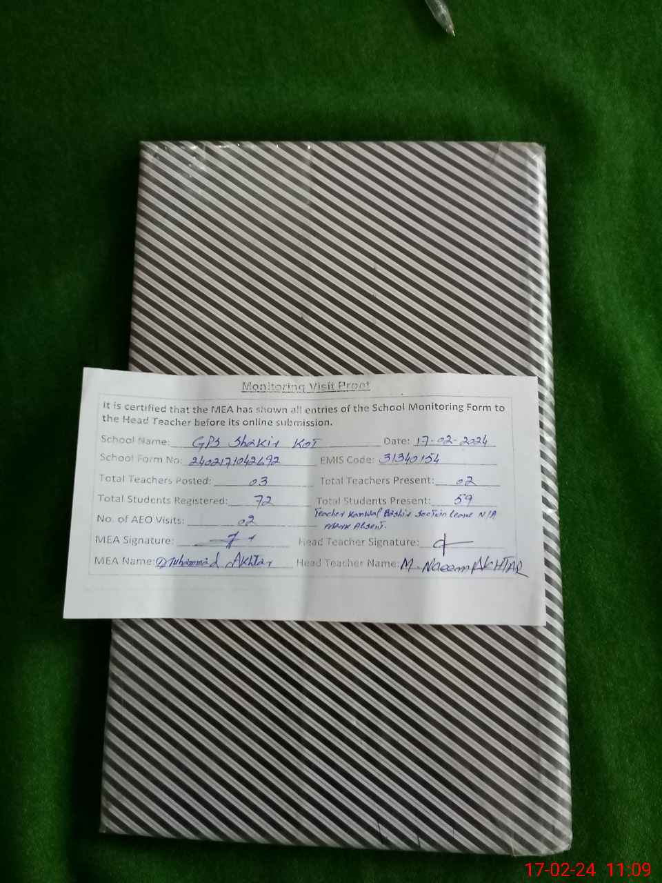 | EMIS Code: 31340154 | Name of School: GPS SHAKIR KOT | |||