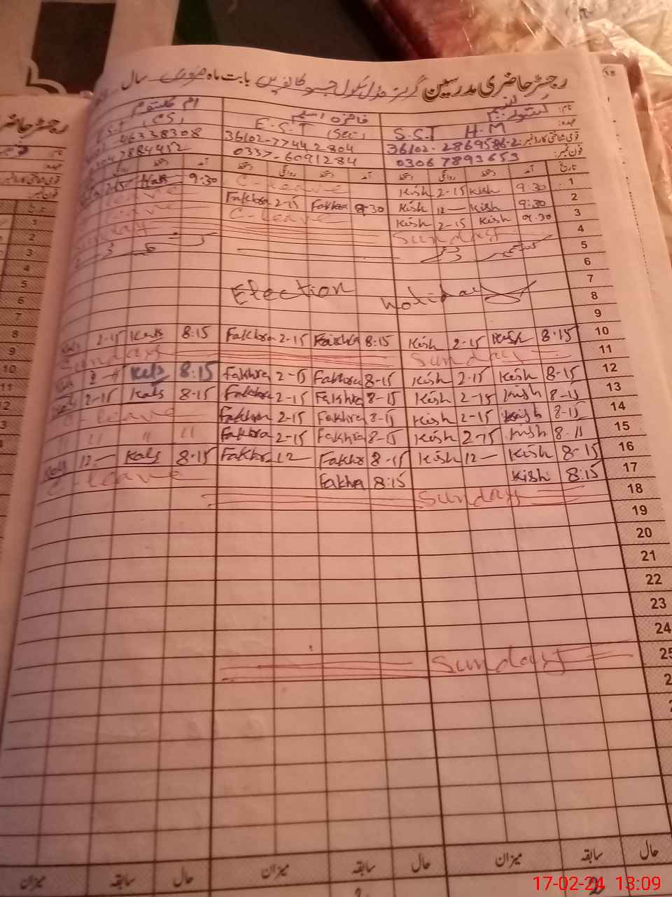 | Name: Ki**** Na**** Designation: (School Headmaster's/Headmistress's) SST GENERAL Phone/Cell Number: 03**** |
