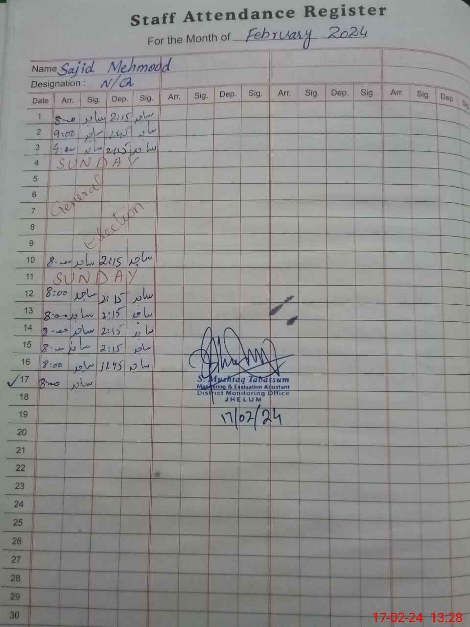 | Monitoring Date: 17-02-2024 | Start Time: 17-02-2024 12:46 PM | End Time: 17-02-2024 01:43 PM | Name of MEA: Sh**** Mu**** Ta**** | |