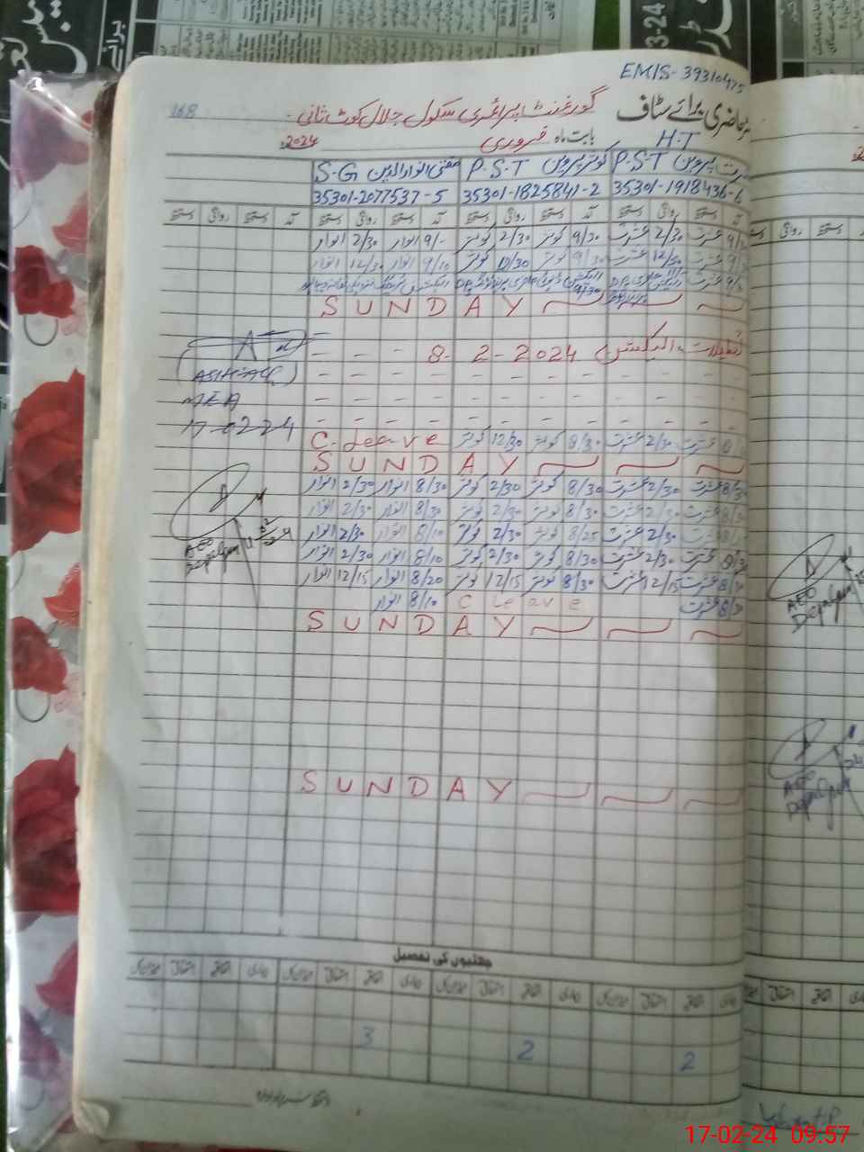 | CNIC | Full Name | Designation | R/C | Absence during last cal. month |