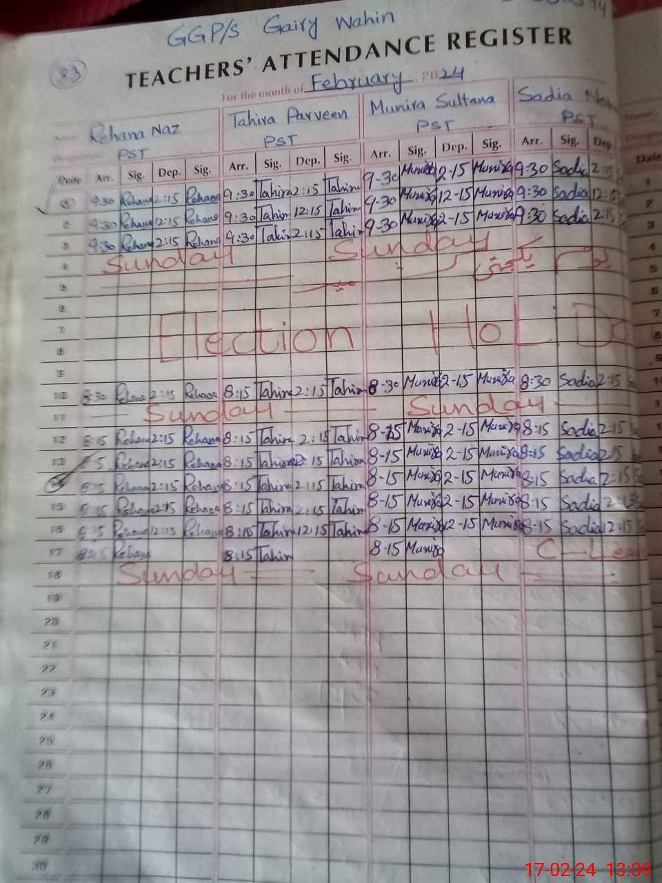 | Name: RE**** NA**** Designation: (School Headmaster's/Headmistress's) PST Phone/Cell Number: 03**** |