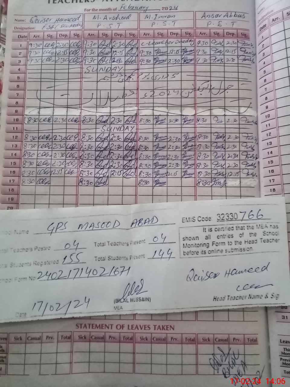 | EMIS Code: 32330766 | Name of School: GPS MASOOD ABAD | |||