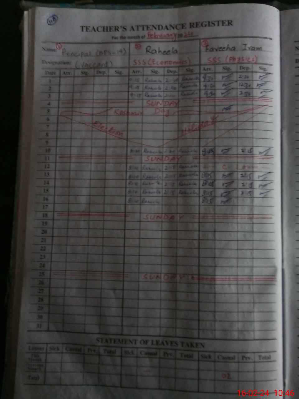 | Remarks (Use Separate Page if Required): BUSHRA NAQVI SST General DIED IN LAST OCTOBER 2023 BUT HER NAME STILL PRESENT IN TEACHER ATTENDANCE LIST PLEASE REMOVED HER NAME FROM TEACHER LIST | |||||
