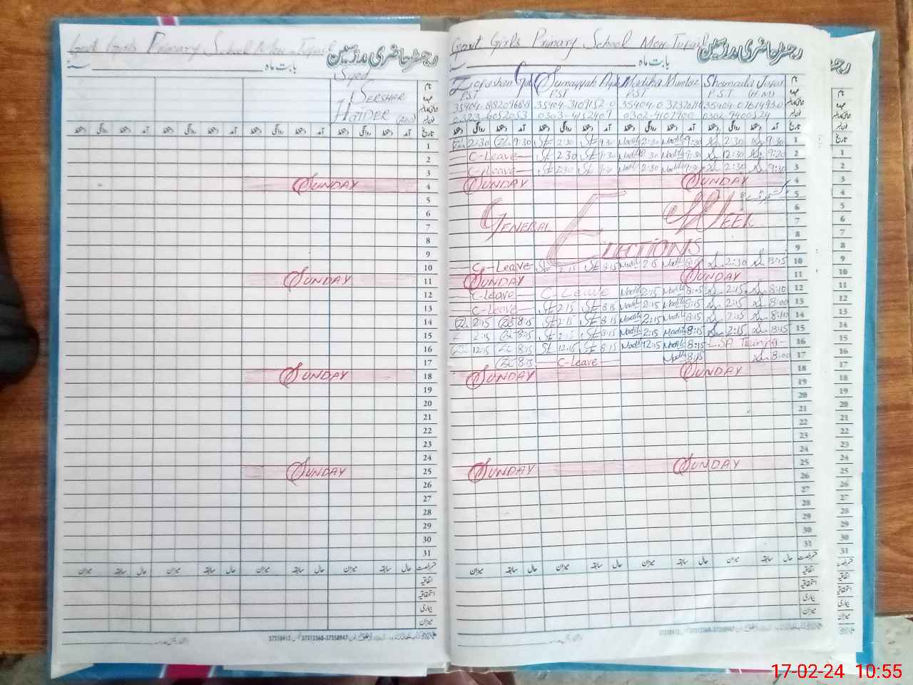 | CNIC | Full Name | Designation | R/C | Absence During Last Calender Month |