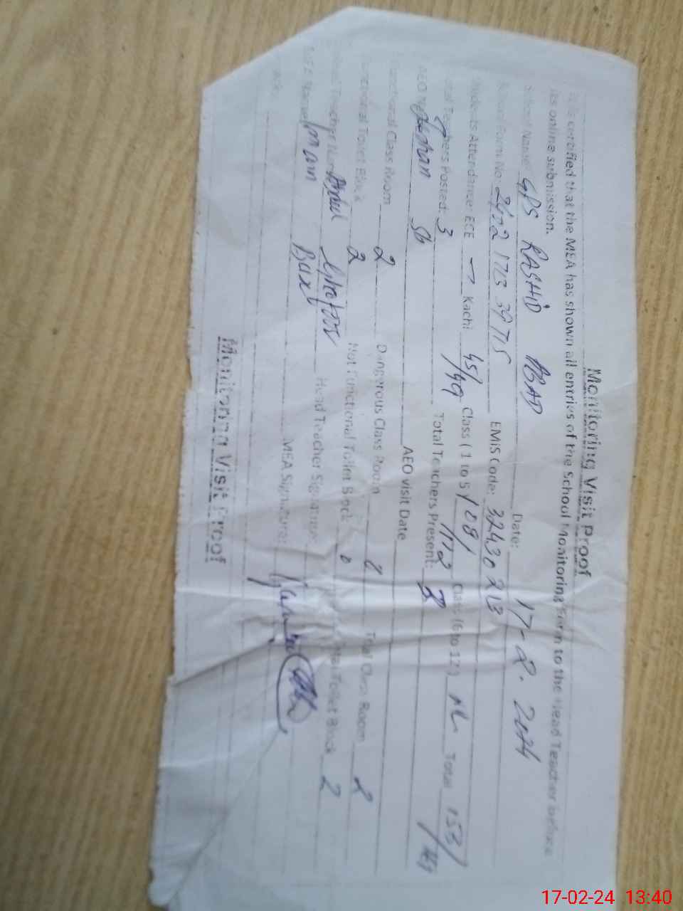 | EMIS Code: 32430213 | Name of School: GPS RASHID ABAD | |||
