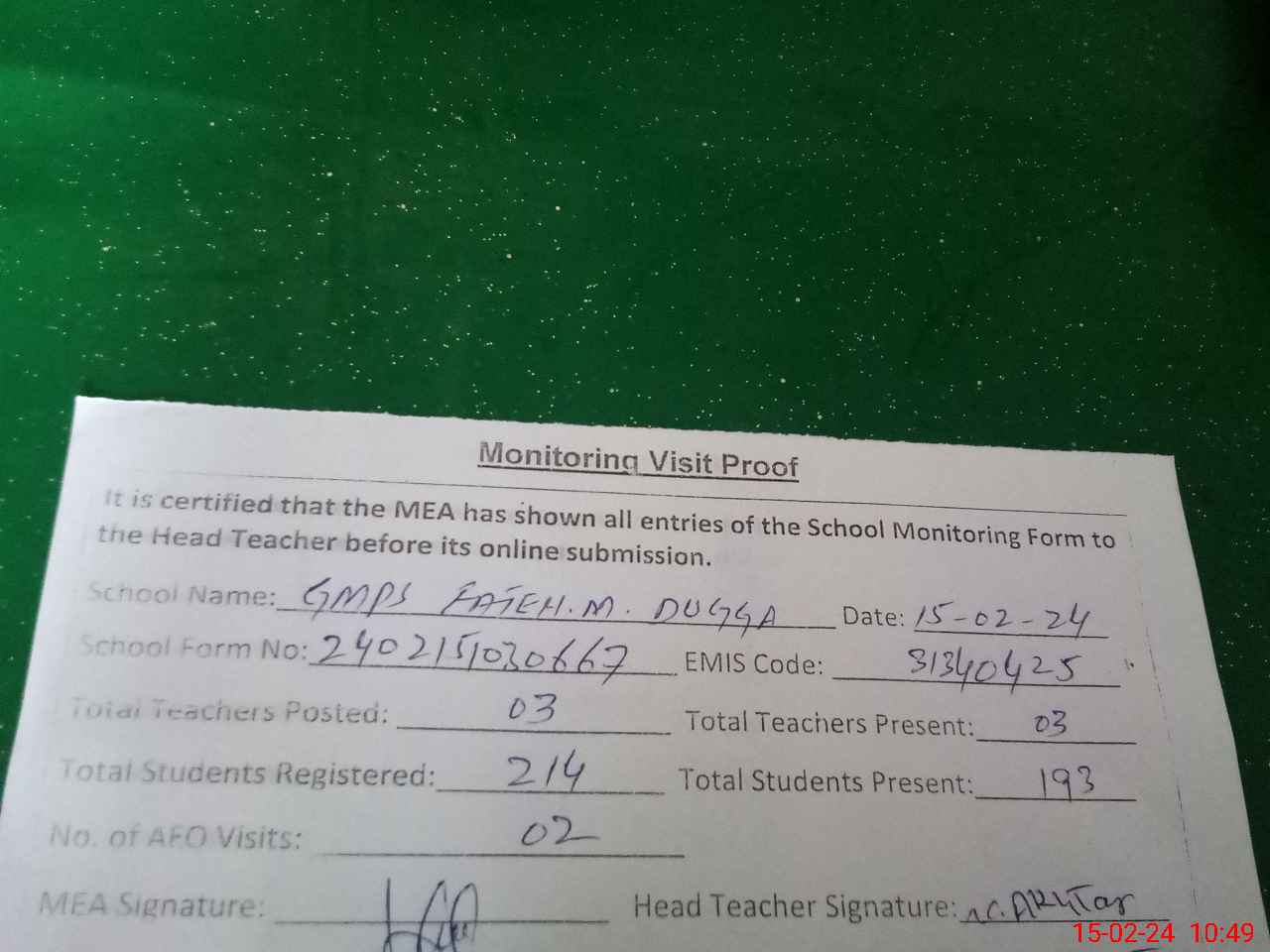 | EMIS Code: 31340425 | Name of School: GMPS FATEH MUHAMMAD DUGGA | |||