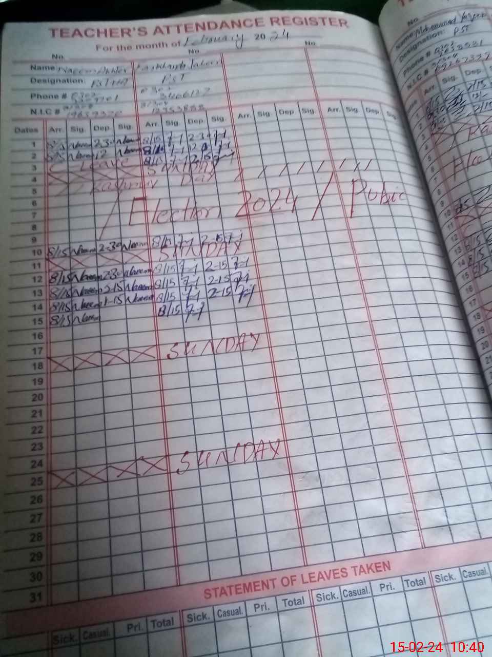 | Name: Ha**** Sh**** Sa**** Designation: (School Headmaster's/Headmistress's) PST Phone/Cell Number: 03**** |