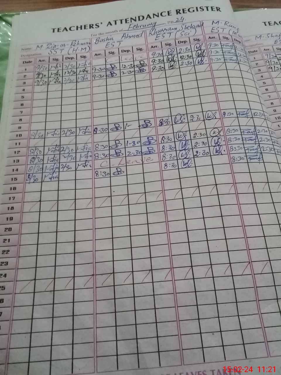 | CNIC | Full Name | Designation | R/C | Absence During Last Calender Month |