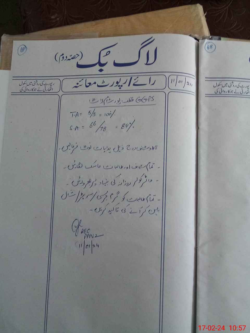 | Remarks (Use Separate Page if Required): PST TAHIRA On additional duty form 13 Feb 24 in GGPS Aziza bad Pakpattan | |||||