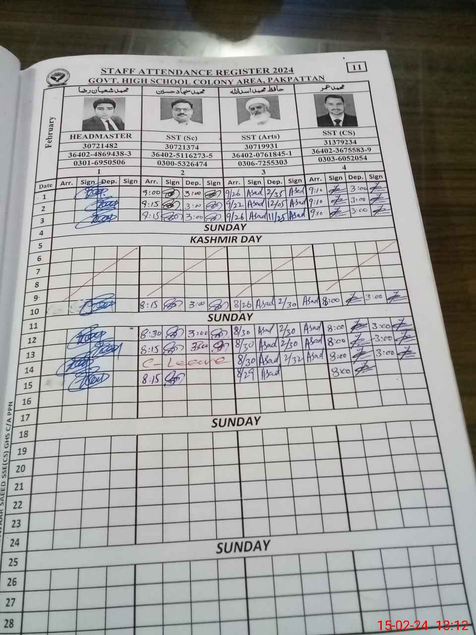 | Name: SA**** HU**** Designation: (School Headmaster's/Headmistress's) HEADMASTER Phone/Cell Number: 03**** |