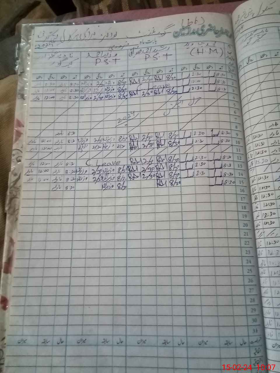 | CNIC | Full Name | Designation | R/C | Absence During Last Calender Month |