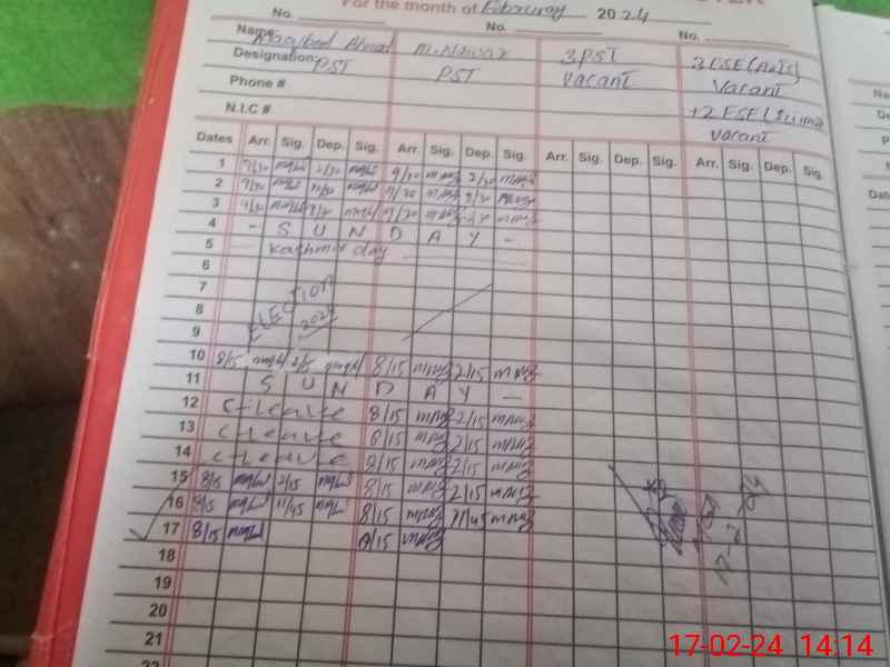 | Name: MA**** AH**** Designation: (School Headmaster's/Headmistress's) PST Phone/Cell Number: 03**** |