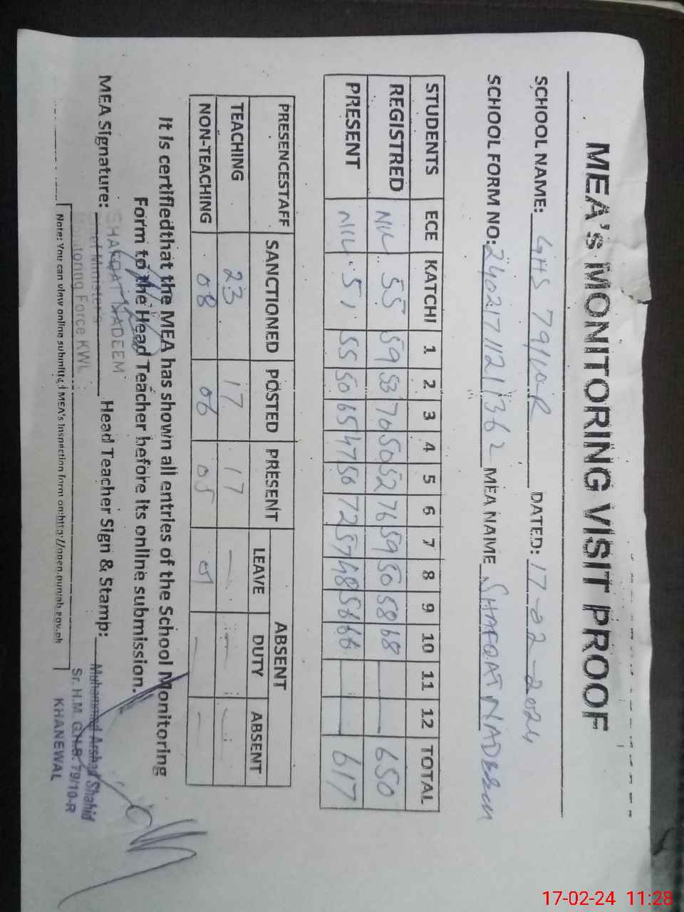 | EMIS Code: 36420024 | Name of School: GHS 79/10-R, KACHA KHUH | |||