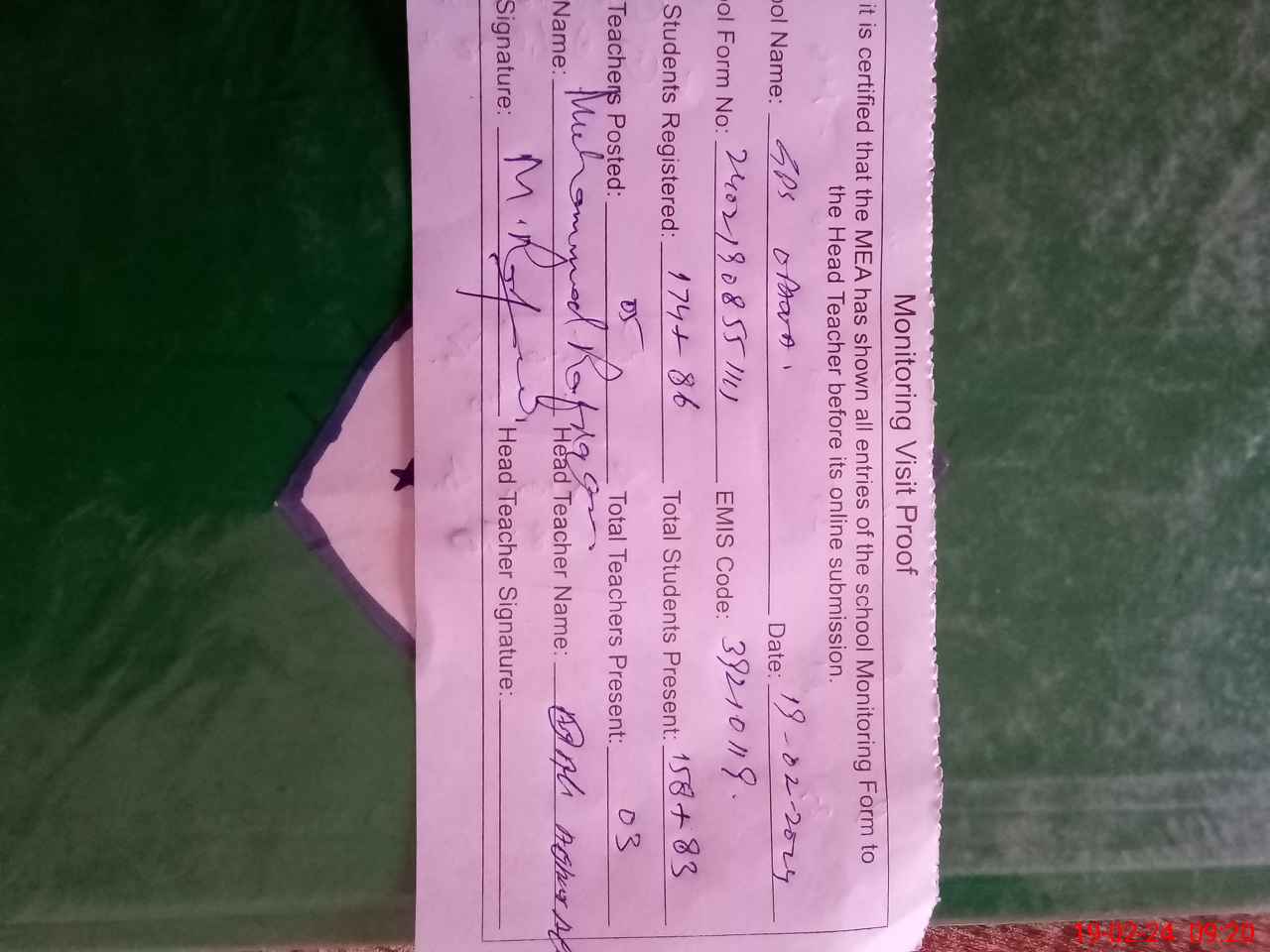 | Certified that this School was Inspected by the Undersigned MEA/DMO Today and the Information Stated Above is as Per Record. | |||||