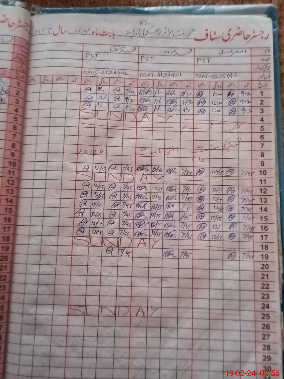| Name: AS**** AL**** Designation: (School Headmaster's/Headmistress's) PST Phone/Cell Number: 03**** |