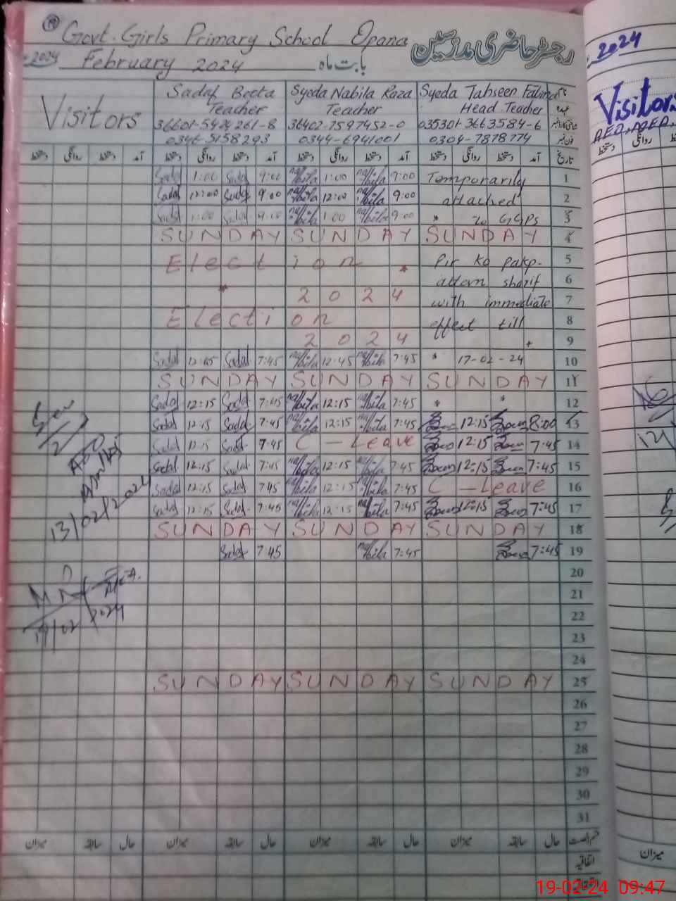 | Name: Sy**** Na**** Designation: (School Headmaster's/Headmistress's) PST(ARTS) Phone/Cell Number: 03**** |